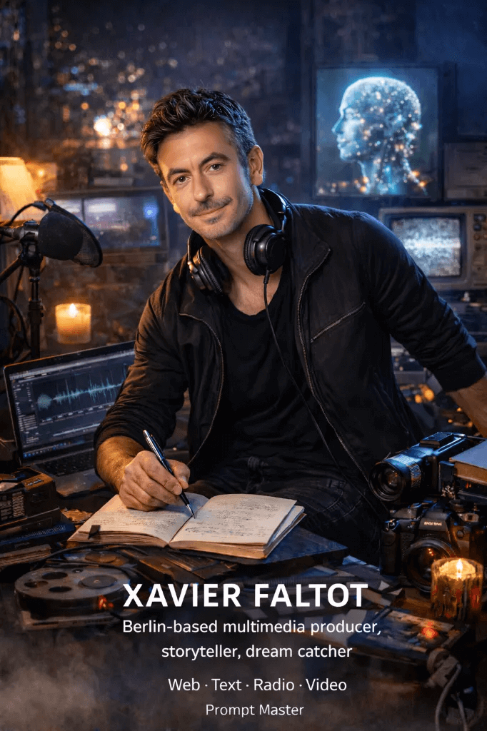 Xavier Faltot est journaliste, producteur média et auteur, basé à Berlin. Actif depuis plus de 20 ans dans la vidéo, la radio, l’éditorial et les cultures numériques, il travaille à la croisée des médias traditionnels, des institutions culturelles et des scènes indépendantes. Sa pratique mêle stratégie et intuition, structure et improvisation.