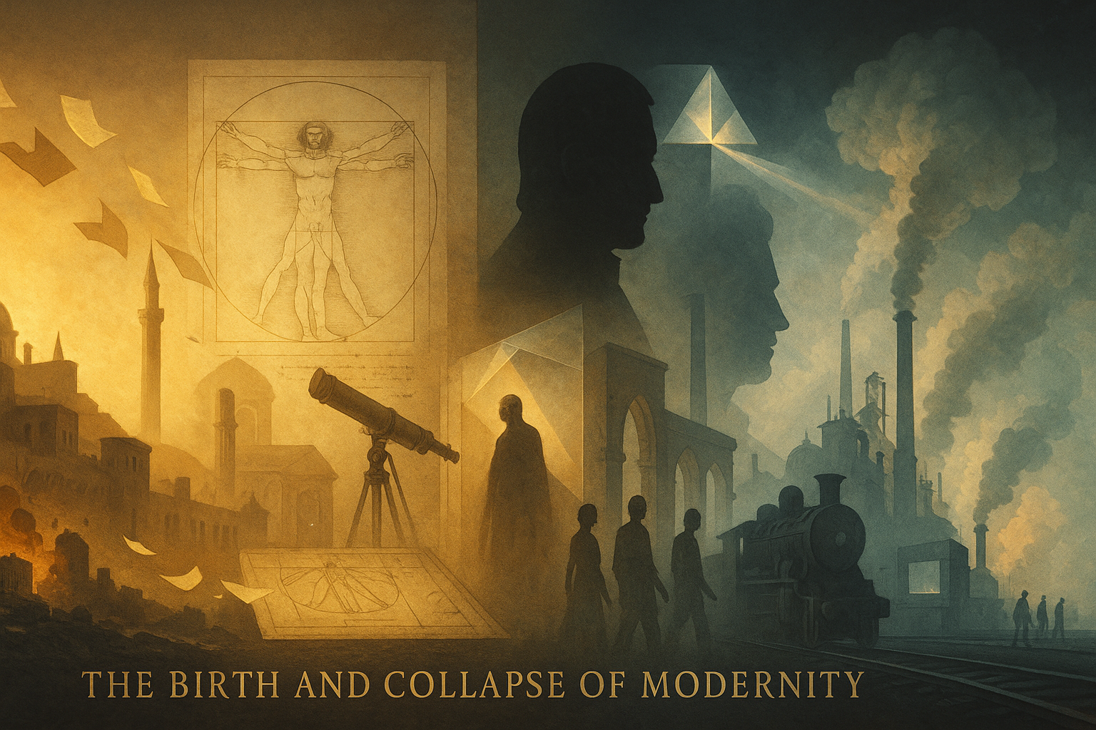 Modernité : le récit d’un monde qui se veut maître de lui-même, fondé sur la raison, la mesure, le progrès, l’émancipation — mais qui finit par produire la technique sans éthique, le sujet sans socle, l’humain sans horizon.